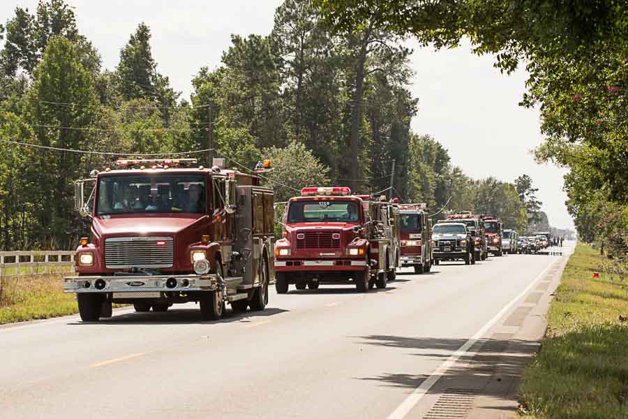 Robbie’s dad, Steve Stanton, is chief of the Flomaton Fire Department. In that profession, every first responder is family and that was evident in the fire trucks, fire rescue, and police and sheriff’s vehicle from several communities in the procession.