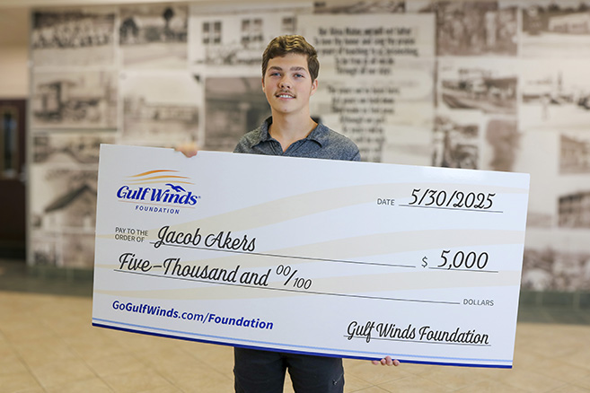 The Gulf Winds Foundation awarded $25,000 in scholarships this year to five outstanding students: Jacob Akers, Flomaton High School; Monessa McMillan, T.R. Miller High School; Breely Richardson, T.R. Miller High School; Lael Peterson, Jay High School; and Jessica Abraham, Fortis Institute, Pensacola. Each student received $5,000 to support their educational pursuits and aspirations.